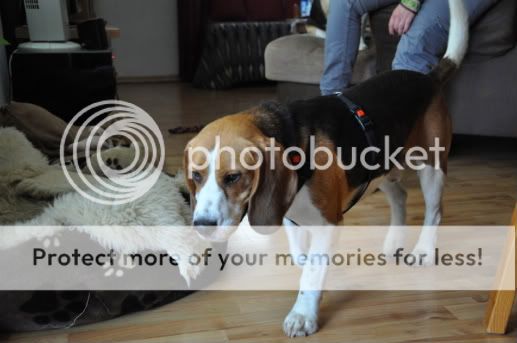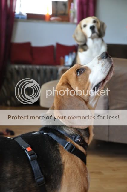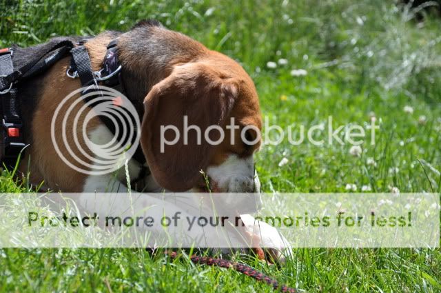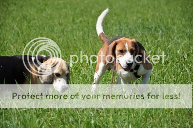 Wir waren um 15 Uhr mit einer Freundin meiner Mutter verabredet zu einem Beagle-Spaziergang eingeladen gewesen. Hier lief er allerdings nicht mehr so ganz ohne ziehen. Ich vermute mal das es daran lag das Fremde Hunde einfach zu intressant waren. Schwänzelnd lief er bzw zog er in Richtung der Hunde. Er gab sich stets freundlich.
