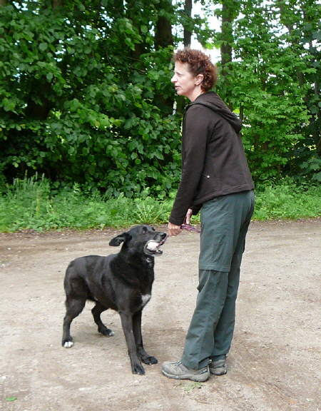 Also Haus und Körperkontakt so la la war das Eine. Das andere war, dass ich mir schon auch bald vorstellen konnte, dass er kleine Hunde zumindest mal gezwickt hatte, so wie es ja im Text der Annonce stand. Denn auch andere Hunde fand er eindeutig „doof“! Wo er konnte startete er Scheinattacken. Bekam er kontra bog er kurz vorher ab und suchte das Weite. Vor großen Hunden hatte er eher Angst, aber Angriff ist ja bekanntlich die beste Verteidigung. Das muss ihm vor mir wohl mal jemand geflüstert haben. Ich bin groß, schwarz, laut und angsterregend – und wenn ich viel Radau mache, merken die anderen nicht, dass ich unsicher bin – könnte er gedacht haben. Und eigentlich klappte diese Masche auch ganz gut. Unsichere Hunde waren beeindruckt und zogen ab, souveräne Hunde ignorierten ihn völlig, weil sie dieses eher hilflose Gezappel wohl genau als solches einordnen konnten. Ich habe viel lernen können auch von all diesen Hunden.