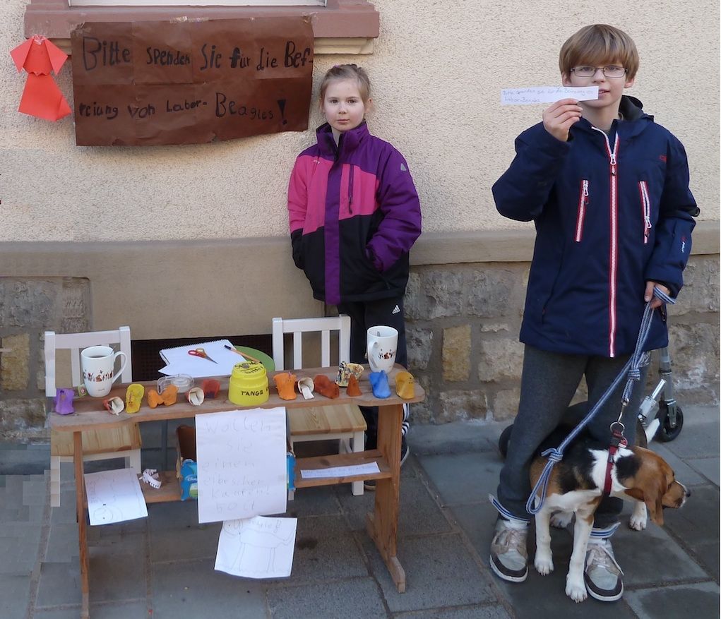 Lisa (9 Jahre) und Sebastian (11 Jahre) entschieden kurzerhand, sich gemeinsam mit einer Freundin für die Laborbeagle einzusetzen.