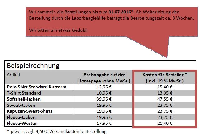 Wir bieten nun eine Sammelbestellung an. Die Lieferung erfolgt gesammelt an ein Teammitglied der Laborbeaglehilfe und wird von dort aus an die jeweiligen Besteller gesendet.